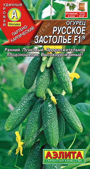 Один из лучших партенокарпических гибридов для открытого грунта и пленочных теплиц. Отличается длительным плодоношением и хорошей устойчивостью к комплексу болезней. Ранний, от всходов до первого сбора плодов 40-45 дней. Завязь пучковая, по 4-6 огурчиков в каждом узле. Зеленец короткий, белошипый, часто- и мелкобугорчатый, массой 90-100 г. Назначение – салатное и консервное. Урожайность в теплице 12-15 кг/м2.