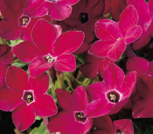 Однолетнее растение представляет собой карликовую форму крылатого табака, высотой 25-30 см, шириной 25-30 см. Цветки воронковидные, крупные, до 5-8 см в диаметре, ароматные, собраны в рыхлые метельчатые соцветия. Цветки открываются к вечеру или в пасмурную погоду. Используют табак для групповых посадок, миксбордеров, рабаток, красиво смотрится в керамических вазах. Табак особенно хорош для затенённых балконов (северной и северо-западной ориентации), холодостоек. Переносит соседство низкорослых растений: петунии, лобелии или агератума, сочетается с сальвией.