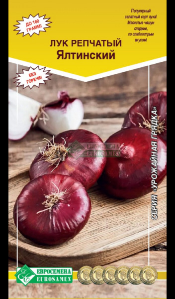 »Ялтинский» - популярный, выращенный на Крымском полуострове, среднеспелый (140-150 дней от всходов до массового полегания листьев) салатный сорт лука. Луковица плоскоокруглая, массой 140-160 г.