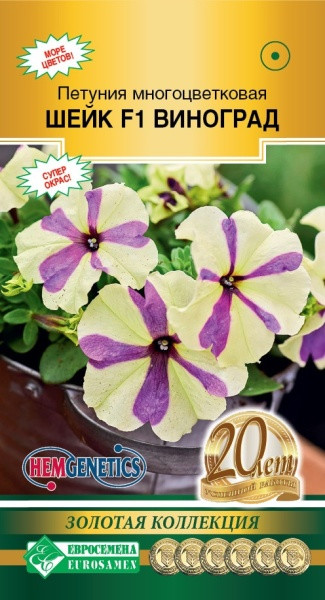 «Шейк»- настоящий прорыв по окраске цветков среди генетически компактных гибридных петуний, они сочетают в себе уникальные окраски цветков с компактностью растений и ранним началом цветения.