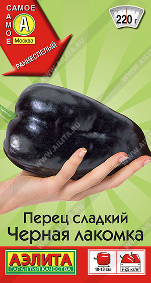 Салатный сорт с красивыми фиолетово-черными сочными плодами. Отлично плодоносит в открытом грунте. А в теплице позволяет получить до 7-7,5 кг/ м2 раннего урожая. Первые плоды созревают через 100-105 дней после появления всходов. Перцы* крупные, массой 180-220 г, толщина стенки достигает 9 мм. Отдельные плоды – с симпатичным носиком. Сорт отзывчивый на качество агротехники, устойчивый к болезням и перепадам температуры.