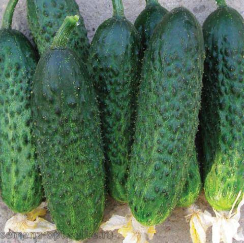 Суперранний высокоурожайный гибрид. (созревание через 36 дней после высадки в грунт) Плоды крупнобугорчатые, однородные, цилиндрической формы, высокого качества, отличной окраски, без горечи. Рекомендуется для выращивания в открытом и защищенном грунте. Партенокарпический, салатный, консервный.