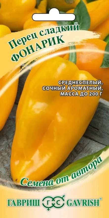 • Среднеранний сорт (105–115 дней до технической спелости). Рекомендуется для выращивания в открытом грунте и пленочных теплицах. Растение средней высоты, среднеоблиственное, с укороченными междоузлиями. Плод конусовидный, 2–3-камерный, длиной 10–12 см, с сочными стенками 5–6 мм, слаборебристый, иногда с поперечной волнистостью у вершины плода. Окраска незрелого плода светло-зеленая, зрелого — солнечно желтая. Масса плода 140–200 г. Рекомендуется для употребления в свежем виде и в домашней кулинарии, при замораживании сохраняет свой вкус и аромат. Посев на рассаду — в конце февраля. Пикировка — в фазе семядолей. Высадка в грунт — в конце мая. Формировка: удаление всех боковых побегов и листьев до первой развилки. Схема посадки: 40х80 см.